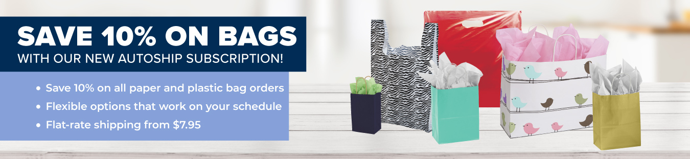 Right now, our Paper and Plastic Bags qualify for Autoship. Check out our collection of bags here!