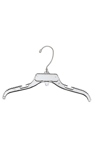 These hangers are molded from K-Resin - a clear break resistant plastic. Our complete selection of break resistant hangers are designed to stand up to the most severe use. Hangers have securely anchored, bright metal swivel hooks. Clip hangers have unique pinch-grip clips for easy insertion and removal of pants and skirts. Dress hangers have bottom loop for showing coordinate outfits.