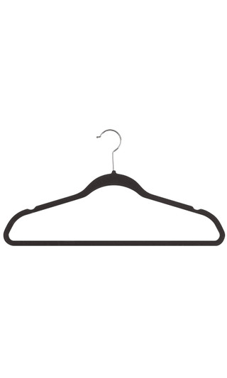 Black Velvet Dress Hangers are an alternative hanger for displaying your retail merchandise. Velvet hangers are great for displaying product that would typically fall off of a regular plastic hanger. The velvet allows strappy dresses and silky tops to stay on the hanger securely. These space-saving hangers feature chrome swivel hooks and notched shoulders.